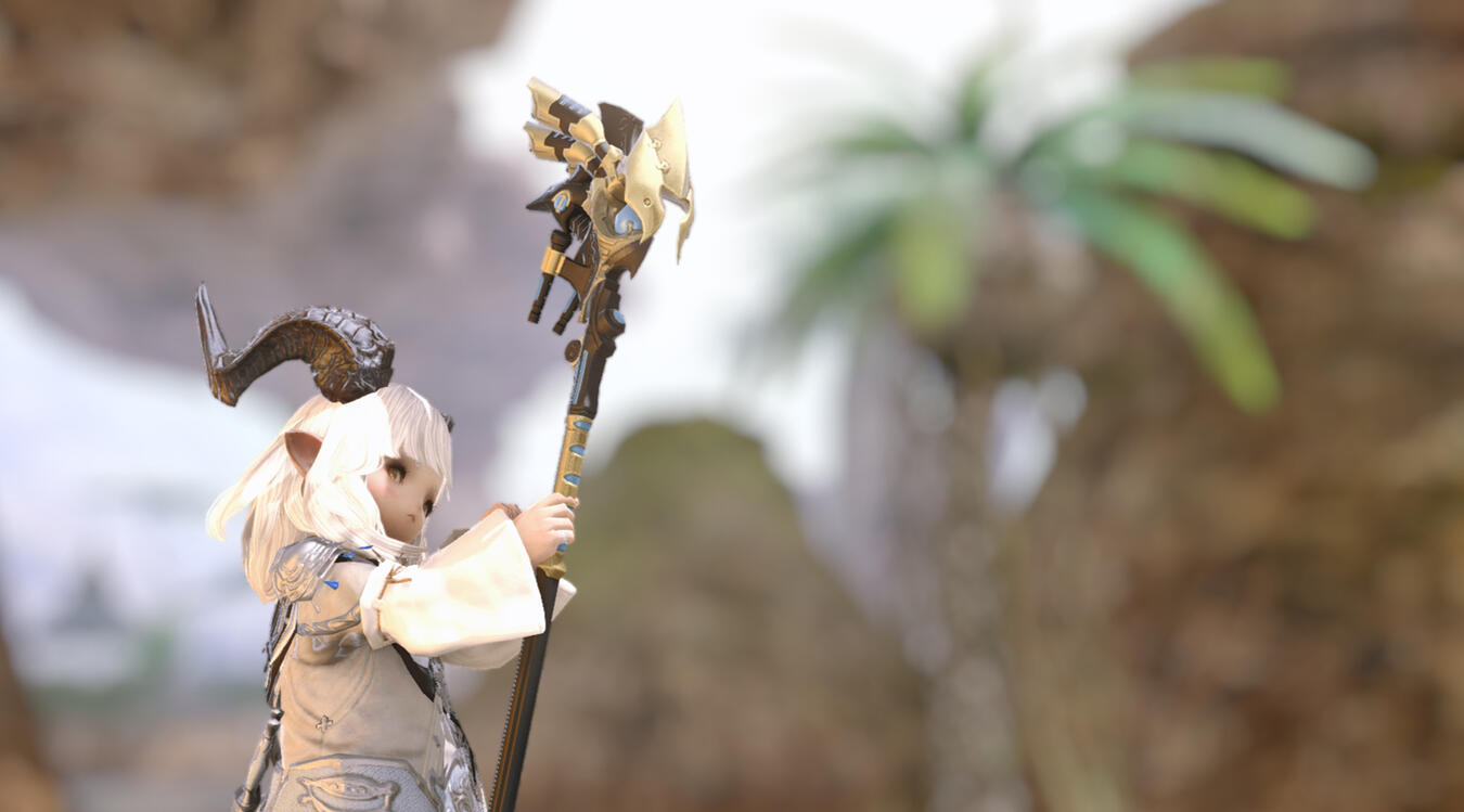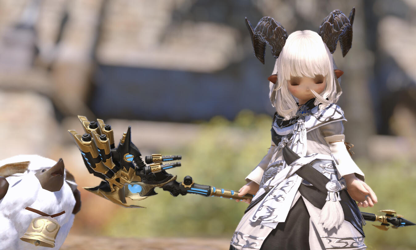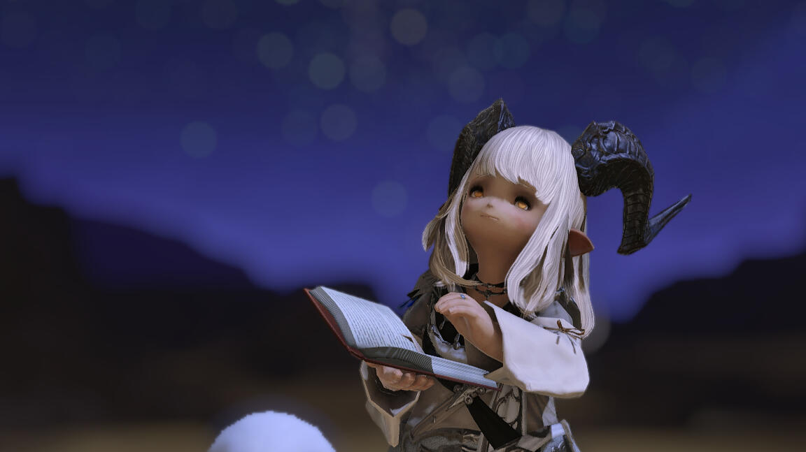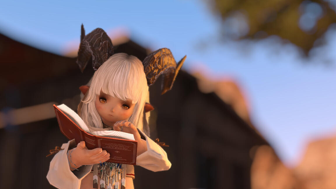 ► She began as a bibliophile hailing from La Noscea's fields, a plainsfolk who found her home in the covers of books and folklore, until her insatiable curiosity led to her acquisition of a cursed parchment leading to her transformation into the dunesfolk-like caprinae before you. Now possessed by a whispering god of the sands, she walks Eorzea as a prophet to this questionable deity unheard of. Her appearance often misleads the common passerby into questioning her plainsfolk name.