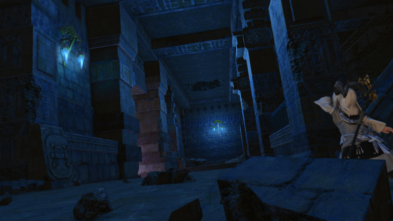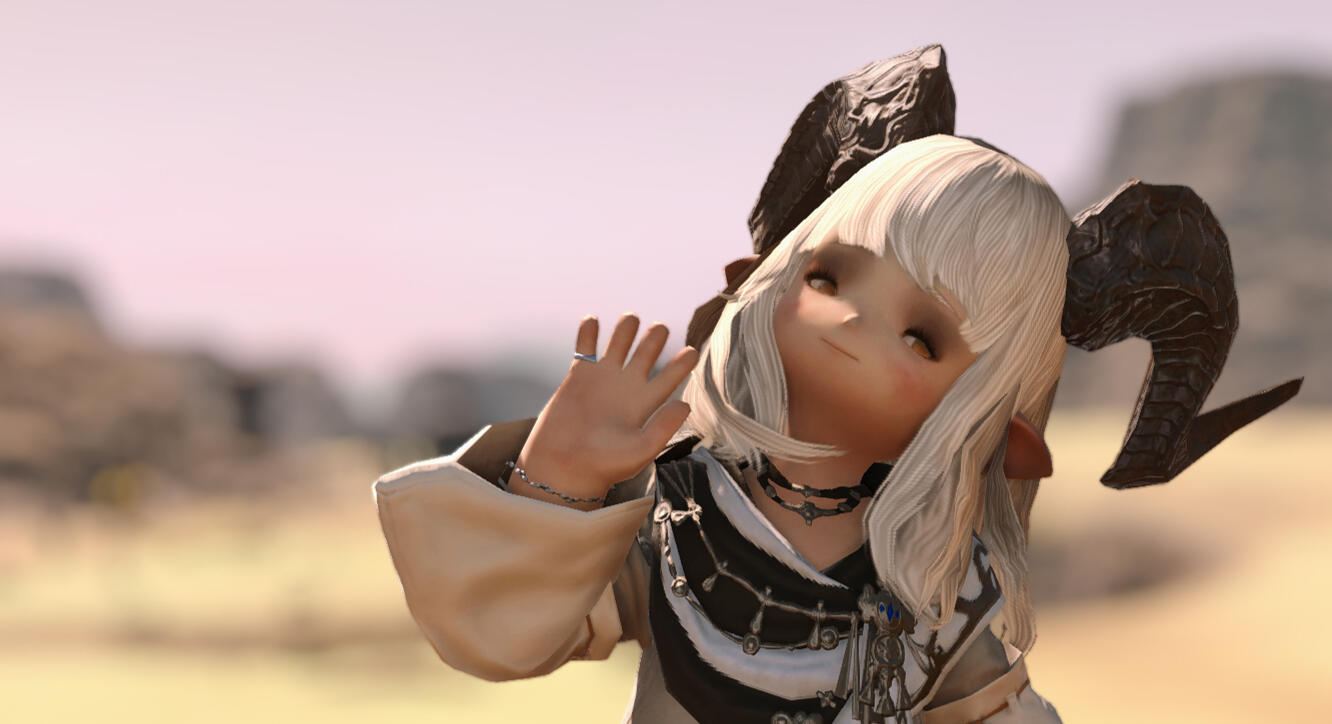 ► She began as a bibliophile hailing from La Noscea's fields, a plainsfolk who found her home in the covers of books and folklore, until her insatiable curiosity led to her acquisition of a cursed parchment leading to her transformation into the dunesfolk-like caprinae before you. Now possessed by a whispering god of the sands, she walks Eorzea as a prophet to this questionable deity unheard of. Her appearance often misleads the common passerby into questioning her plainsfolk name.